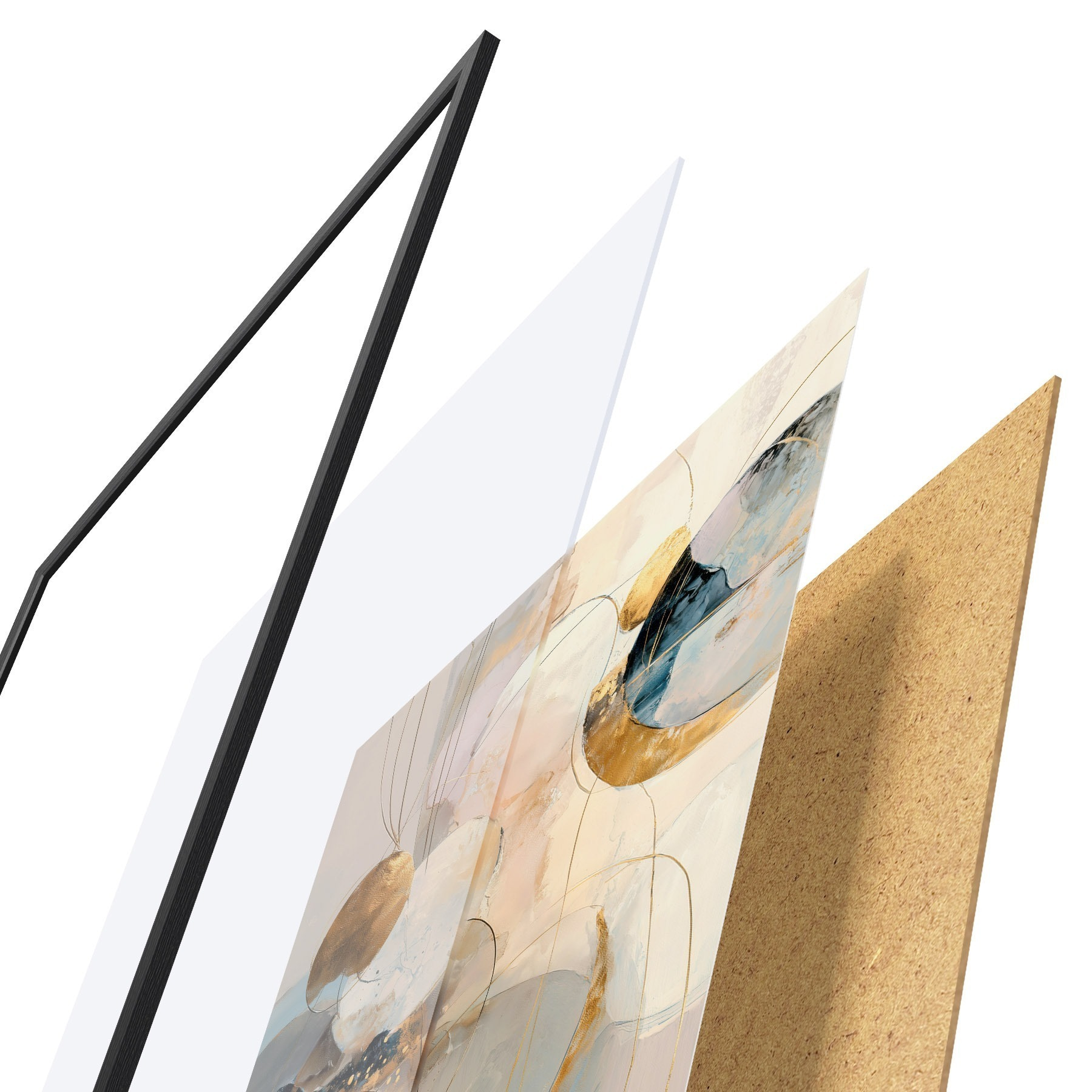 Plakat składa się z ramy, pleksi, wydrukowanego obrazu i podkładu z płyty wiórowej. Plakat można natychmiast zawiesić na ścianie dzięki uchwytom z tyłu.