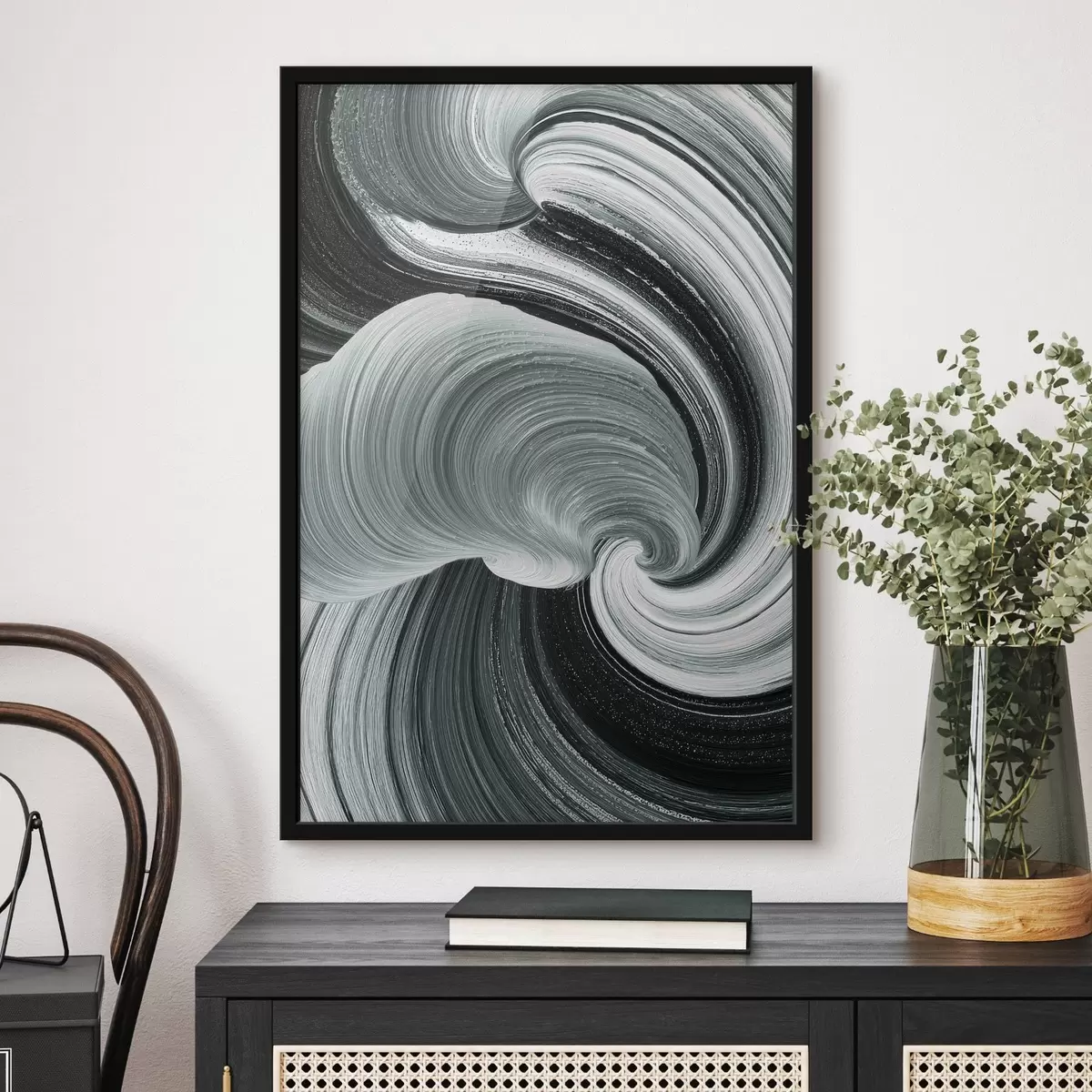 Plakat Energia ruchu: czarno-biała abstrakcja w stylu malarstwa olejnego f47990