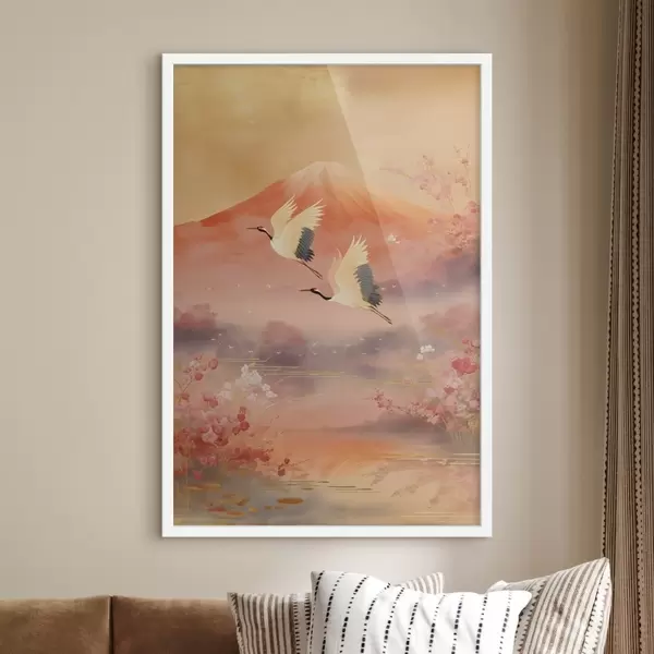 Plakat Tradycyjny motyw wschodni z kwiatami wiśni i żurawiami f47991