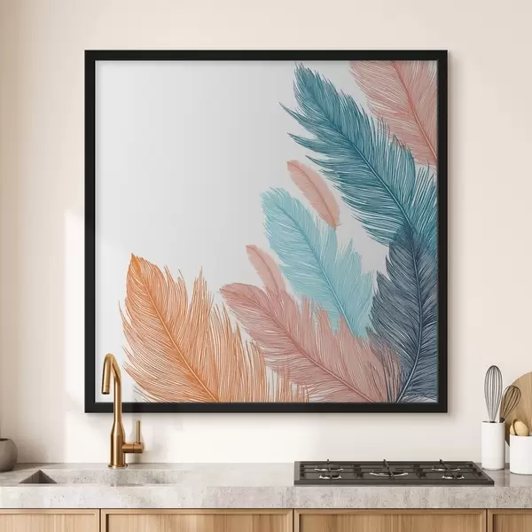 Poster Wielobarwne pióra na białym tle Nr f48003
