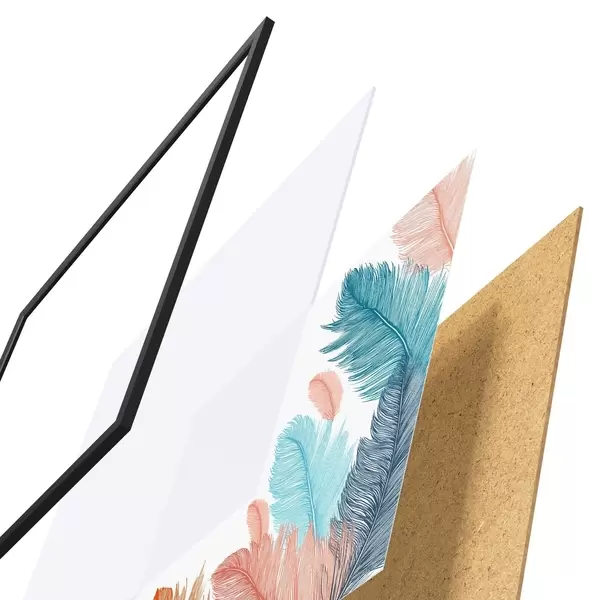 Plakat składa się z ramy, pleksi, wydrukowanego obrazu i podkładu z płyty wiórowej. Plakat można natychmiast zawiesić na ścianie dzięki uchwytom z tyłu.