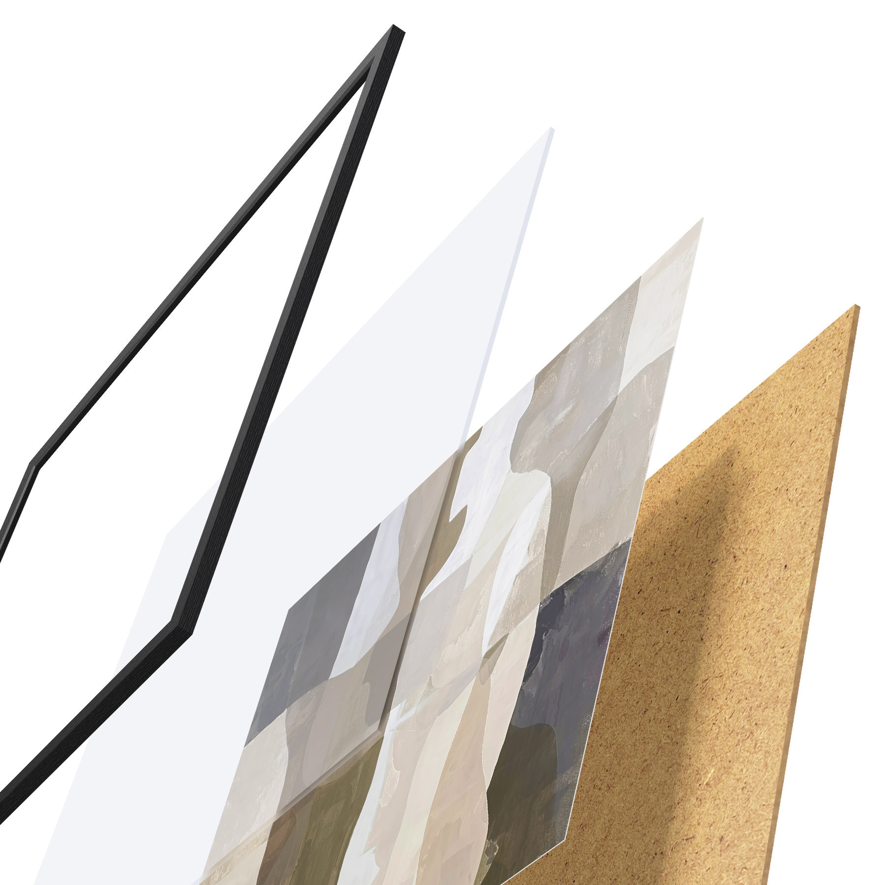 Plakat składa się z ramy, pleksi, wydrukowanego obrazu i podkładu z płyty wiórowej. Plakat można natychmiast zawiesić na ścianie dzięki uchwytom z tyłu.