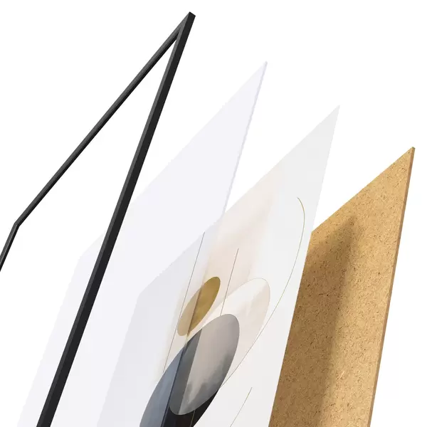 Plakat składa się z ramy, pleksi, wydrukowanego obrazu i podkładu z płyty wiórowej. Plakat można natychmiast zawiesić na ścianie dzięki uchwytom z tyłu.