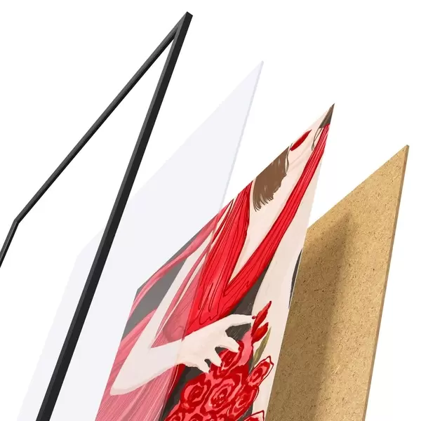Plakat składa się z ramy, pleksi, wydrukowanego obrazu i podkładu z płyty wiórowej. Plakat można natychmiast zawiesić na ścianie dzięki uchwytom z tyłu.