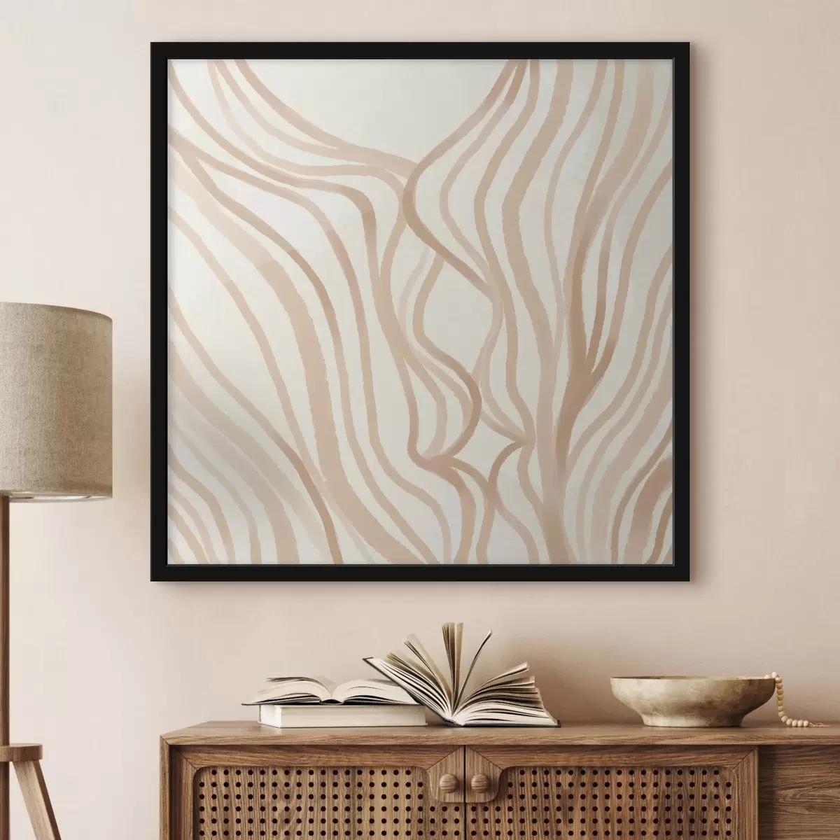 Plakat Abstrakcyjne faliste linie w odcieniach beżu f48027