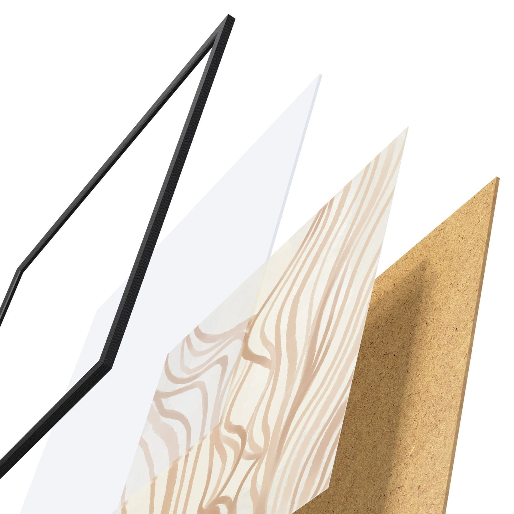 Plakat składa się z ramy, pleksi, wydrukowanego obrazu i podkładu z płyty wiórowej. Plakat można natychmiast zawiesić na ścianie dzięki uchwytom z tyłu.