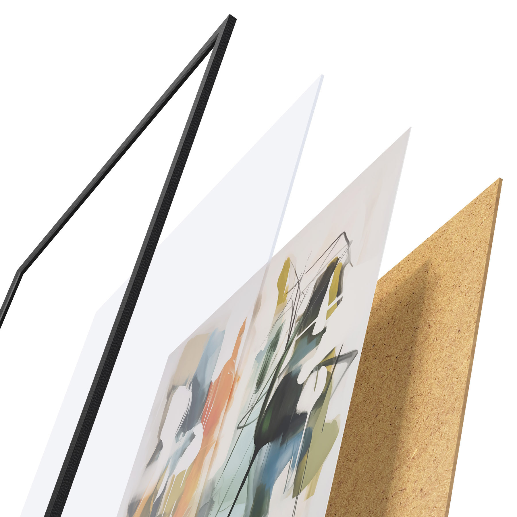 Plakat składa się z ramy, pleksi, wydrukowanego obrazu i podkładu z płyty wiórowej. Plakat można natychmiast zawiesić na ścianie dzięki uchwytom z tyłu.