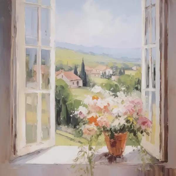 Poster Bukiet w wazonie przy oknie Nr f48052