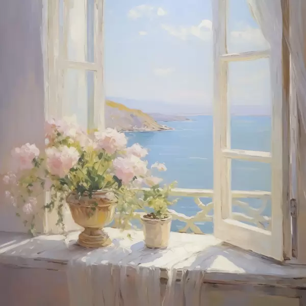 Poster Bukiet w wazonie przy oknie Nr f48053