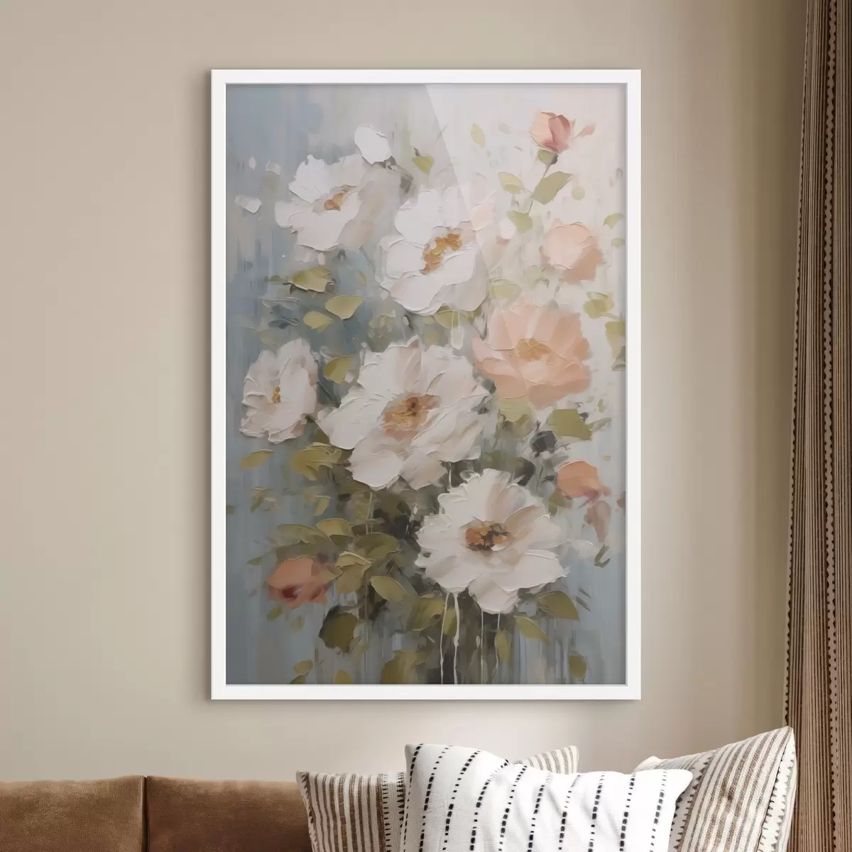 Sprzedajemy obrazy na blejtramie - jest to drewniana rama, na którą naciągnięte jest płótno. Tego obrazu nie trzeba oprawiać; można go powiesić bezpośrednio na ścianie.