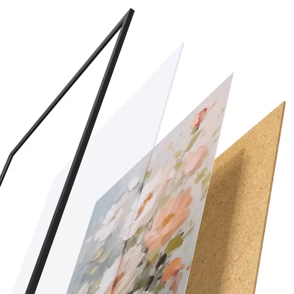 Plakat składa się z ramy, pleksi, wydrukowanego obrazu i podkładu z płyty wiórowej. Plakat można natychmiast zawiesić na ścianie dzięki uchwytom z tyłu.