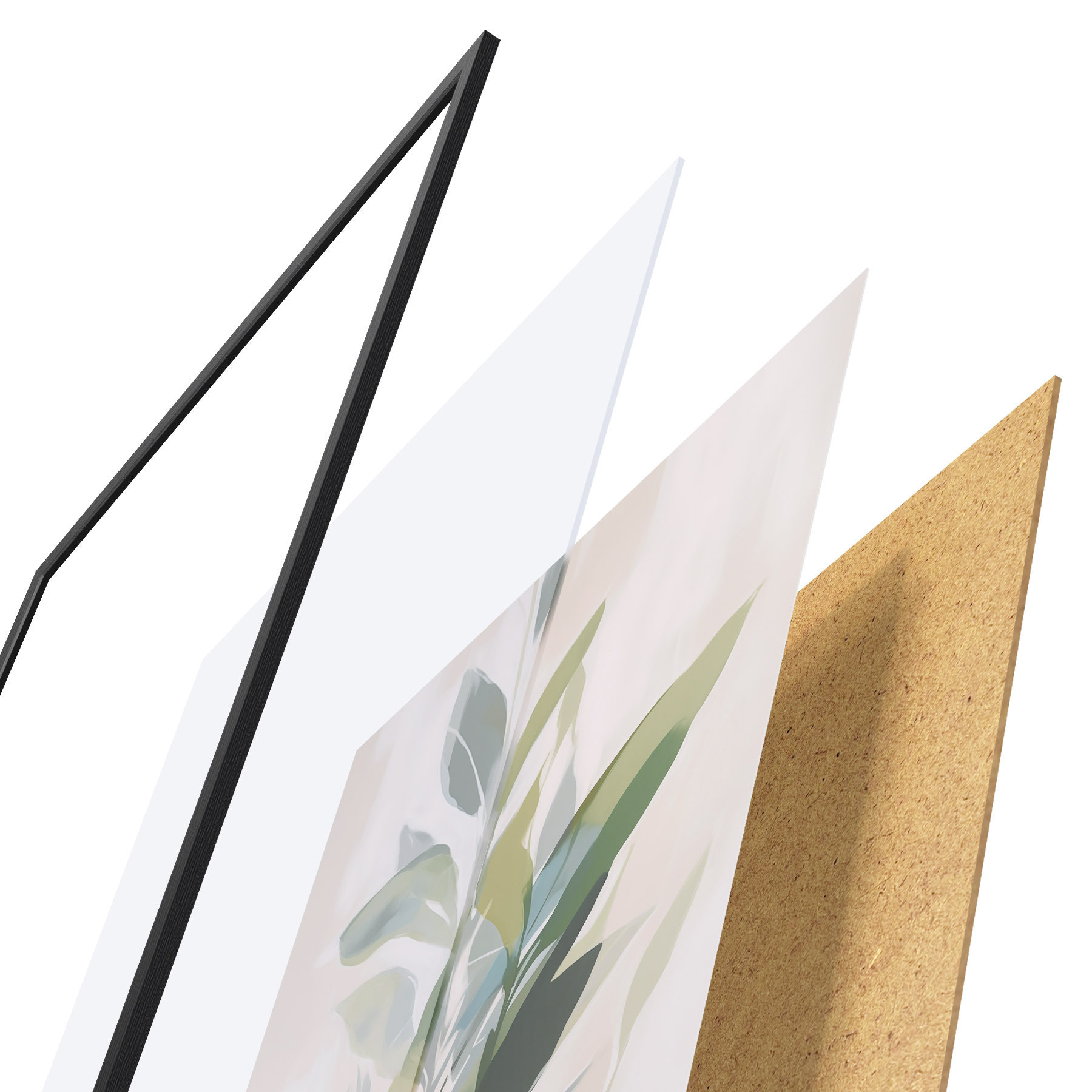Plakat składa się z ramy, pleksi, wydrukowanego obrazu i podkładu z płyty wiórowej. Plakat można natychmiast zawiesić na ścianie dzięki uchwytom z tyłu.