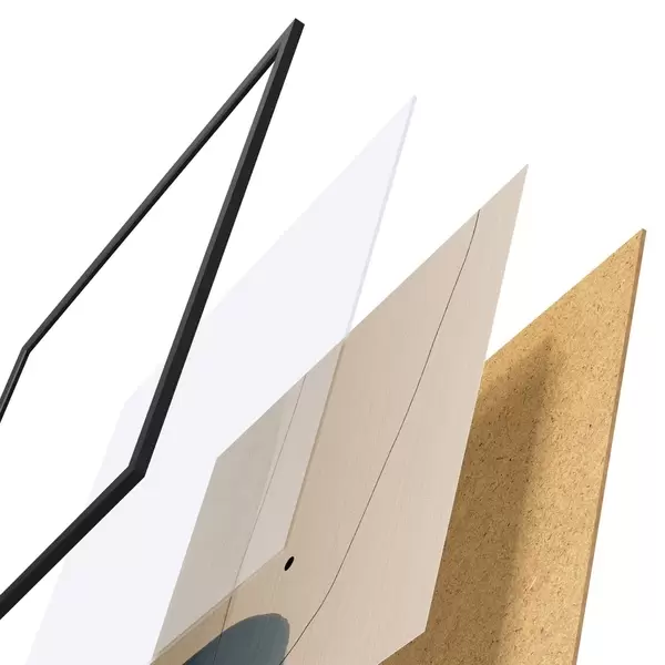 Plakat składa się z ramy, pleksi, wydrukowanego obrazu i podkładu z płyty wiórowej. Plakat można natychmiast zawiesić na ścianie dzięki uchwytom z tyłu.