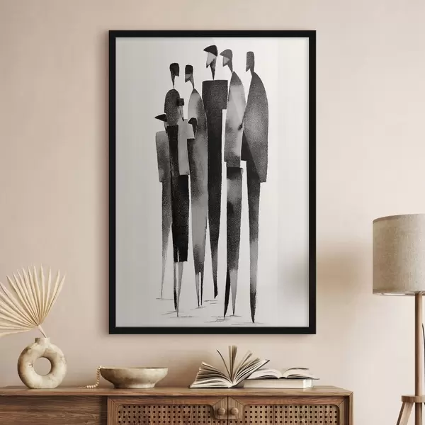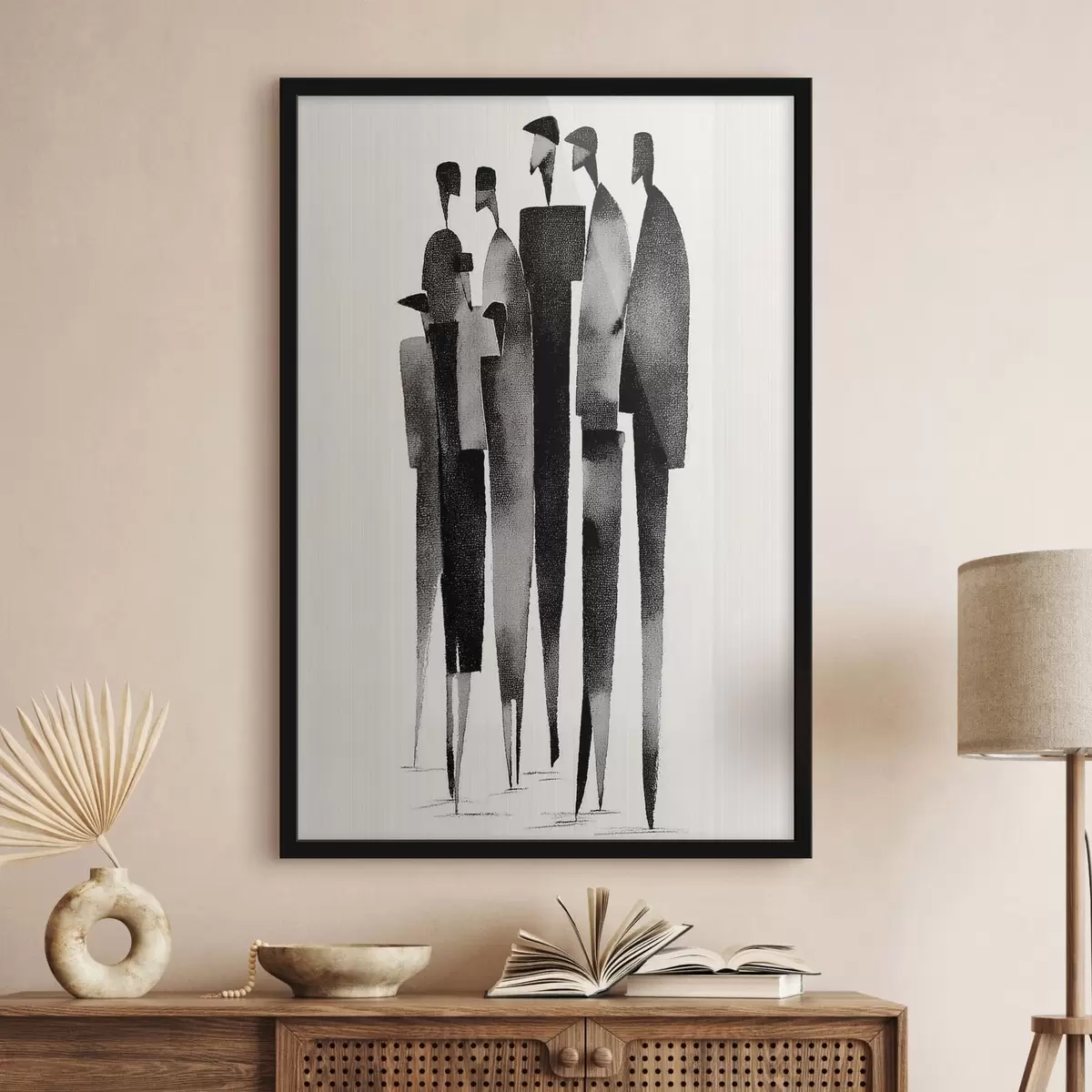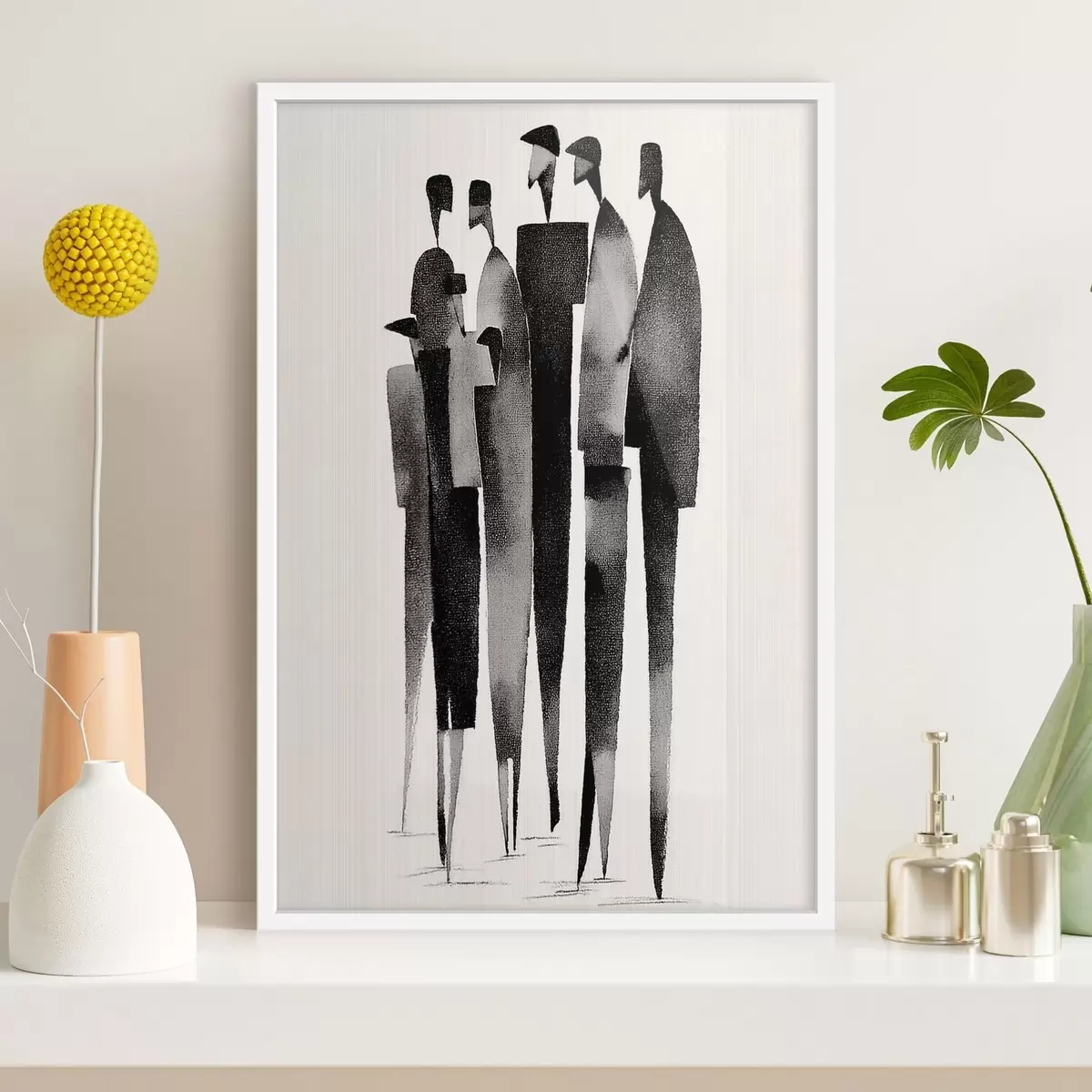 Poster minimalistyczne, wydłużone postacie ludzkie stojące w rzędzie Nr f48068