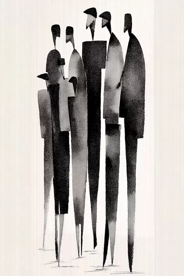Poster minimalistyczne, wydłużone postacie ludzkie stojące w rzędzie Nr f48068