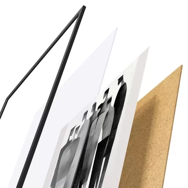 Plakat składa się z ramy, pleksi, wydrukowanego obrazu i podkładu z płyty wiórowej. Plakat można natychmiast zawiesić na ścianie dzięki uchwytom z tyłu.