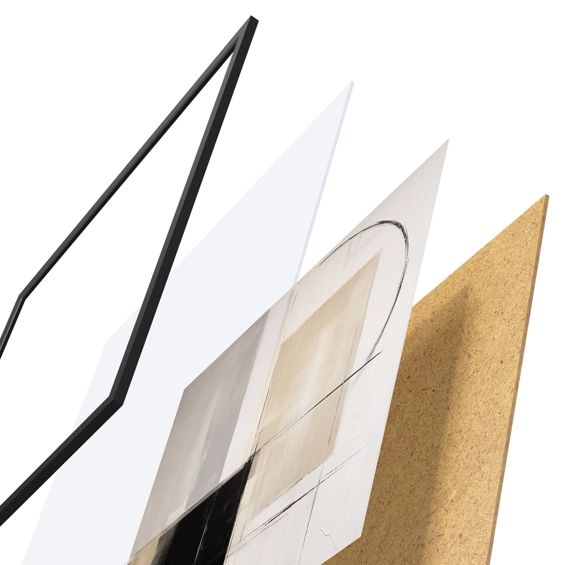 Plakat składa się z ramy, pleksi, wydrukowanego obrazu i podkładu z płyty wiórowej. Plakat można natychmiast zawiesić na ścianie dzięki uchwytom z tyłu.
