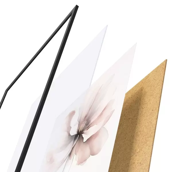Plakat składa się z ramy, pleksi, wydrukowanego obrazu i podkładu z płyty wiórowej. Plakat można natychmiast zawiesić na ścianie dzięki uchwytom z tyłu.