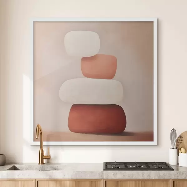 Plakat minimalistyczna kompozycja abstrakcyjnych ułożonych w stosach kształtów f48076