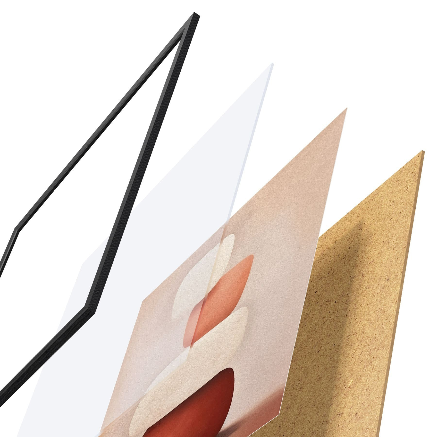 Plakat składa się z ramy, pleksi, wydrukowanego obrazu i podkładu z płyty wiórowej. Plakat można natychmiast zawiesić na ścianie dzięki uchwytom z tyłu.