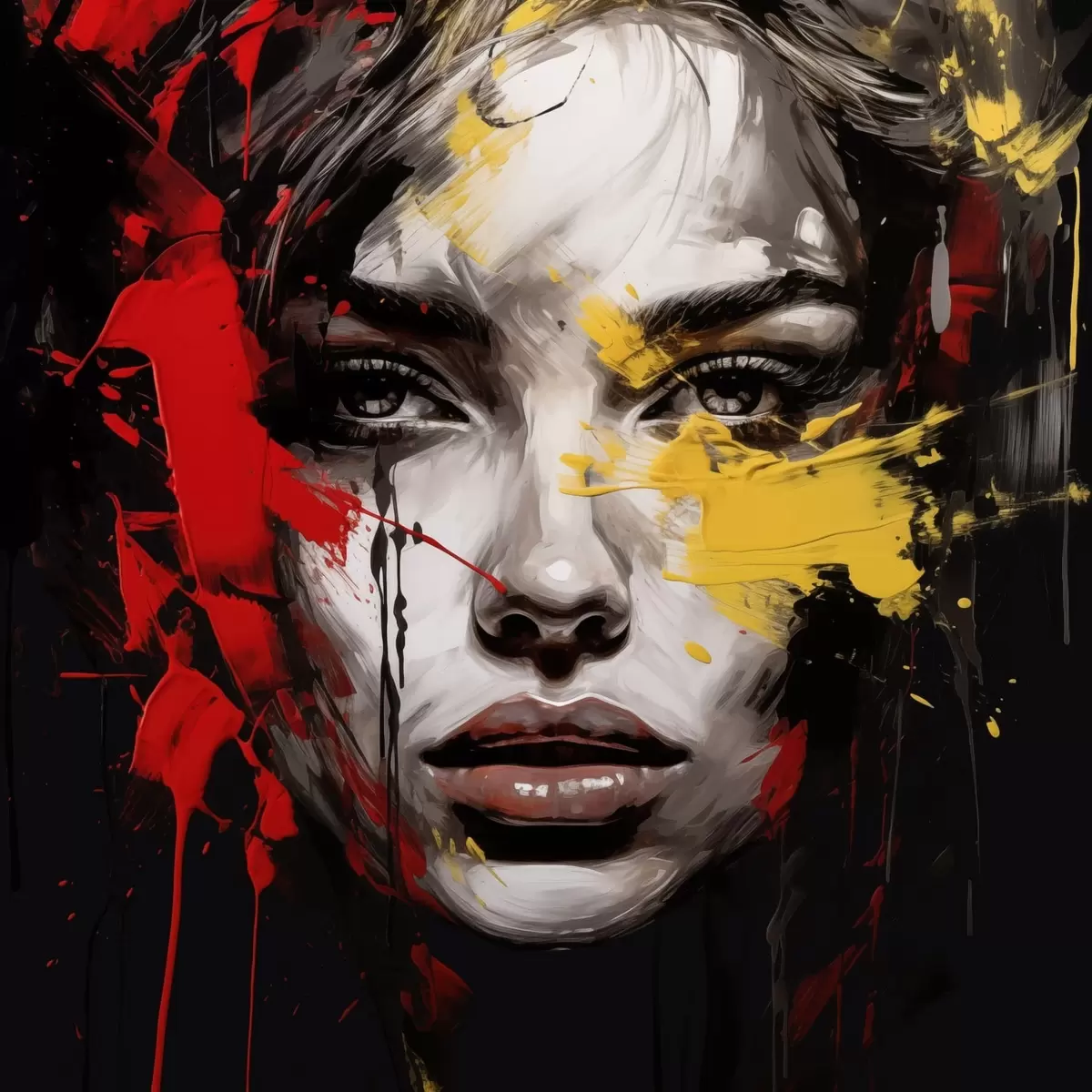 Poster Portret kobiety z czerwonymi i żółtymi pociągnięciami pędzla Nr f48089