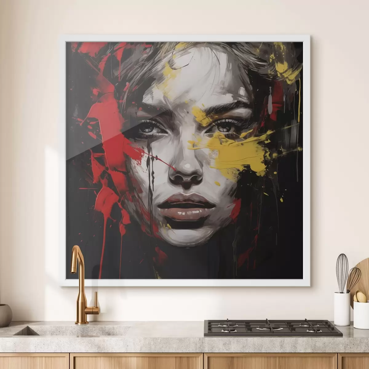 Plakat Portret kobiety z czerwonymi i żółtymi pociągnięciami pędzla f48089