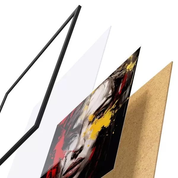 Plakat składa się z ramy, pleksi, wydrukowanego obrazu i podkładu z płyty wiórowej. Plakat można natychmiast zawiesić na ścianie dzięki uchwytom z tyłu.