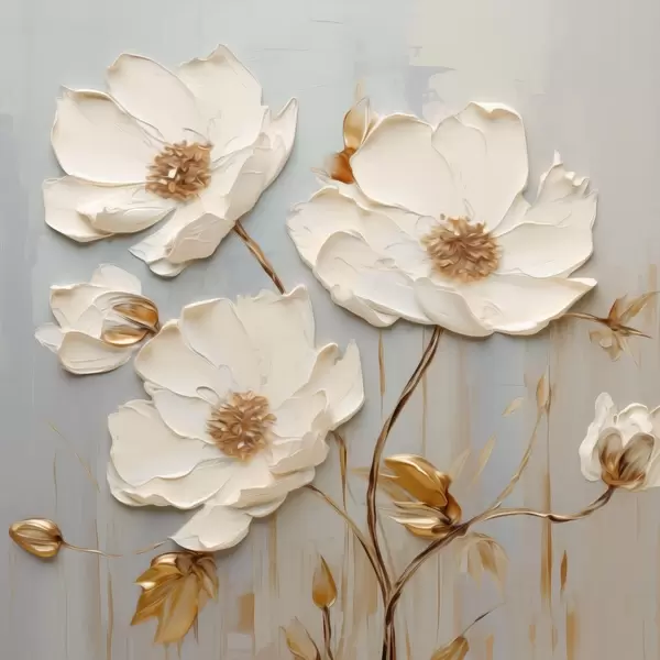 Plakat Białe kwiaty z ciepłymi liśćmi f48093