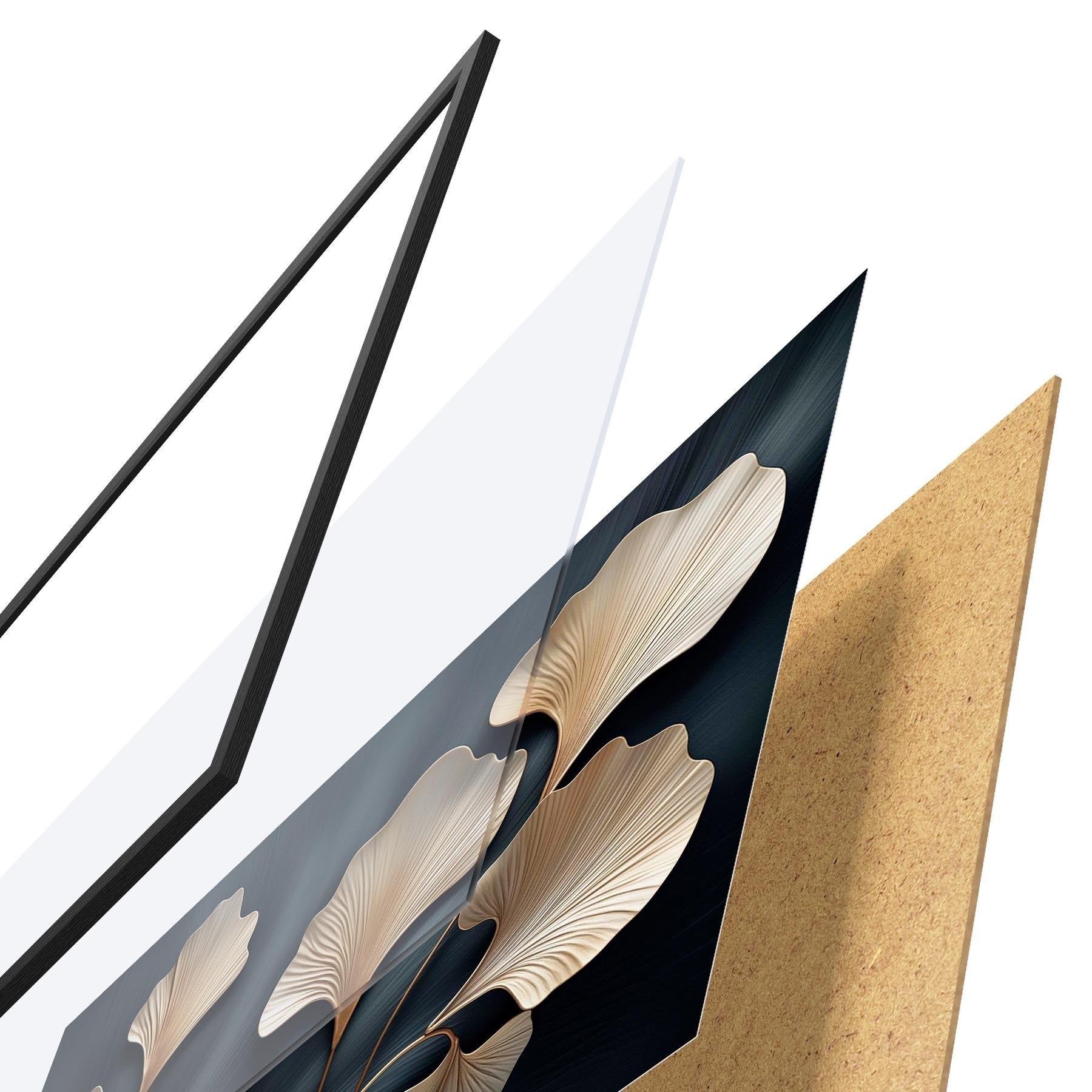 Plakat składa się z ramy, pleksi, wydrukowanego obrazu i podkładu z płyty wiórowej. Plakat można natychmiast zawiesić na ścianie dzięki uchwytom z tyłu.