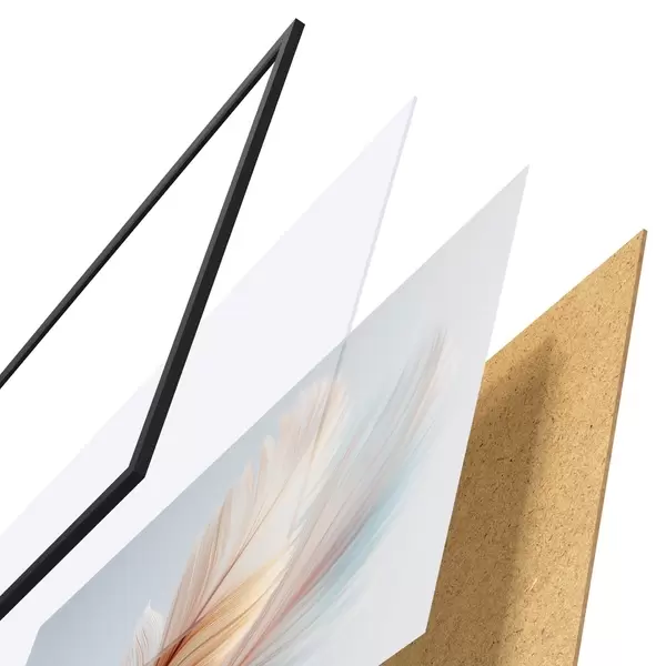 Plakat składa się z ramy, pleksi, wydrukowanego obrazu i podkładu z płyty wiórowej. Plakat można natychmiast zawiesić na ścianie dzięki uchwytom z tyłu.