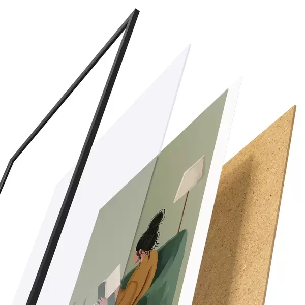 Plakat składa się z ramy, pleksi, wydrukowanego obrazu i podkładu z płyty wiórowej. Plakat można natychmiast zawiesić na ścianie dzięki uchwytom z tyłu.