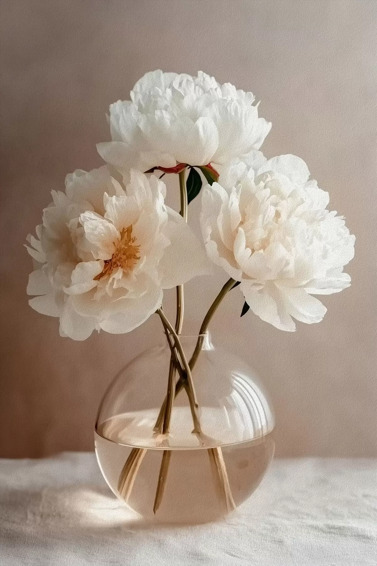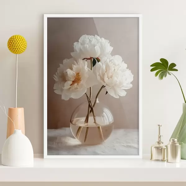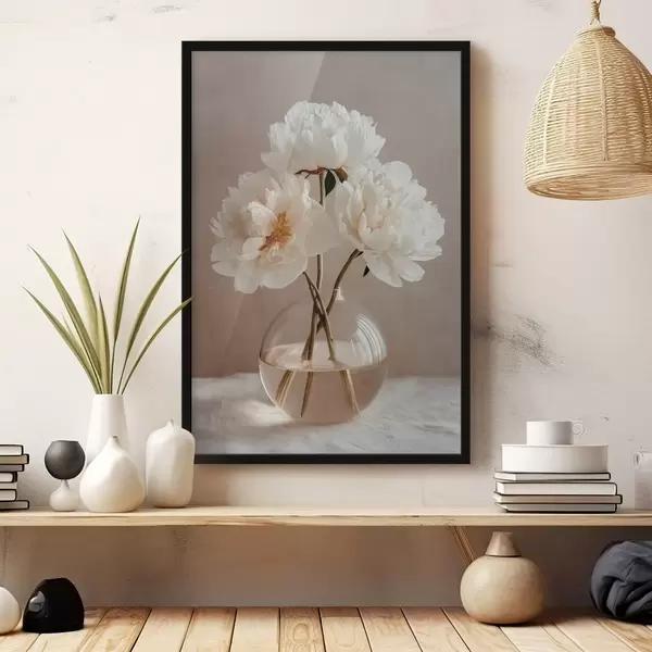 Poster przestronna, minimalistyczna martwa natura z piwoniami Nr f48119