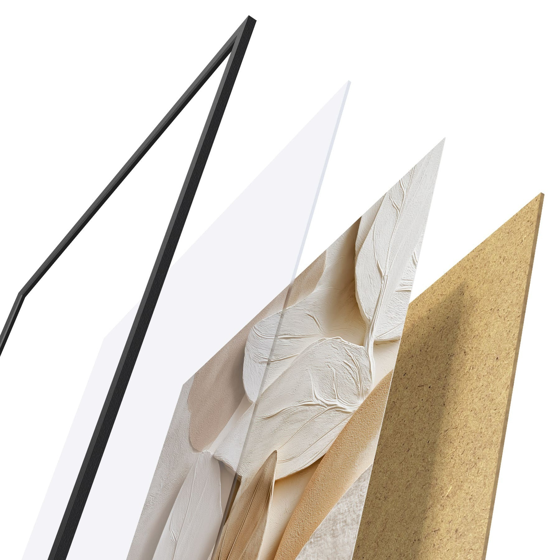 Plakat składa się z ramy, pleksi, wydrukowanego obrazu i podkładu z płyty wiórowej. Plakat można natychmiast zawiesić na ścianie dzięki uchwytom z tyłu.