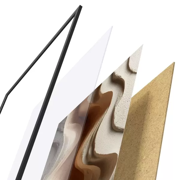 Plakat składa się z ramy, pleksi, wydrukowanego obrazu i podkładu z płyty wiórowej. Plakat można natychmiast zawiesić na ścianie dzięki uchwytom z tyłu.