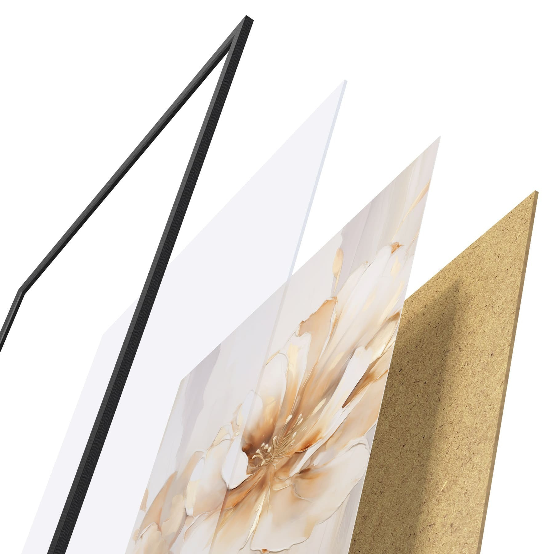 Plakat składa się z ramy, pleksi, wydrukowanego obrazu i podkładu z płyty wiórowej. Plakat można natychmiast zawiesić na ścianie dzięki uchwytom z tyłu.