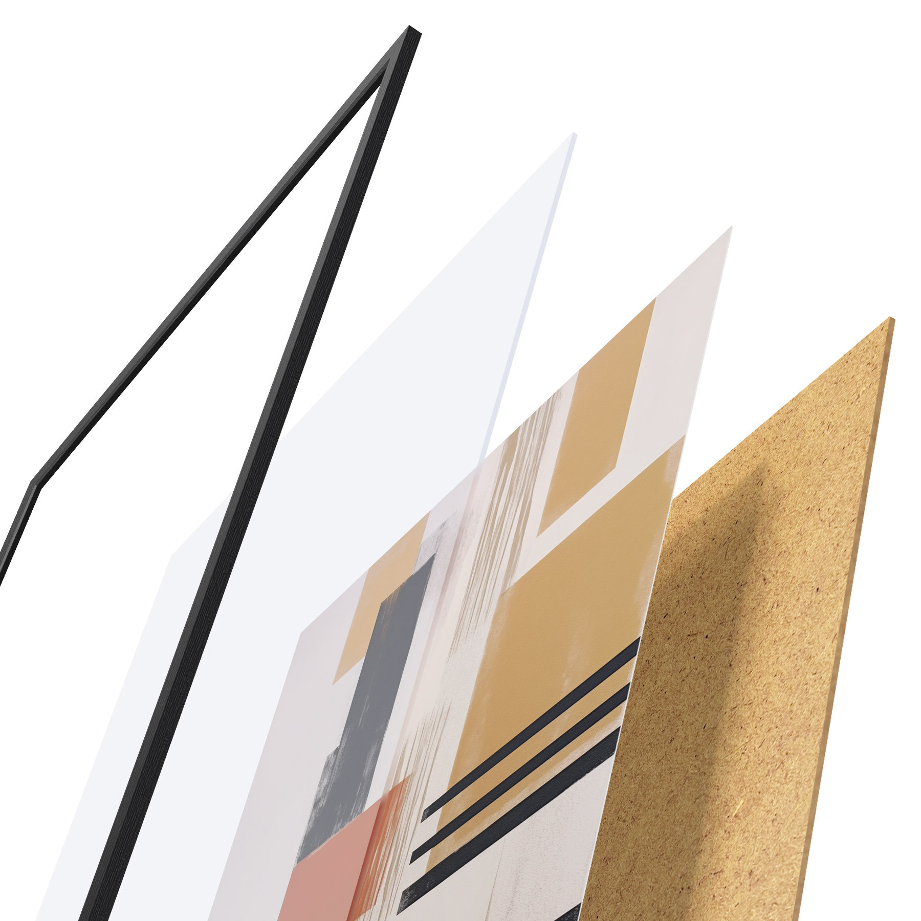 Plakat składa się z ramy, pleksi, wydrukowanego obrazu i podkładu z płyty wiórowej. Plakat można natychmiast zawiesić na ścianie dzięki uchwytom z tyłu.