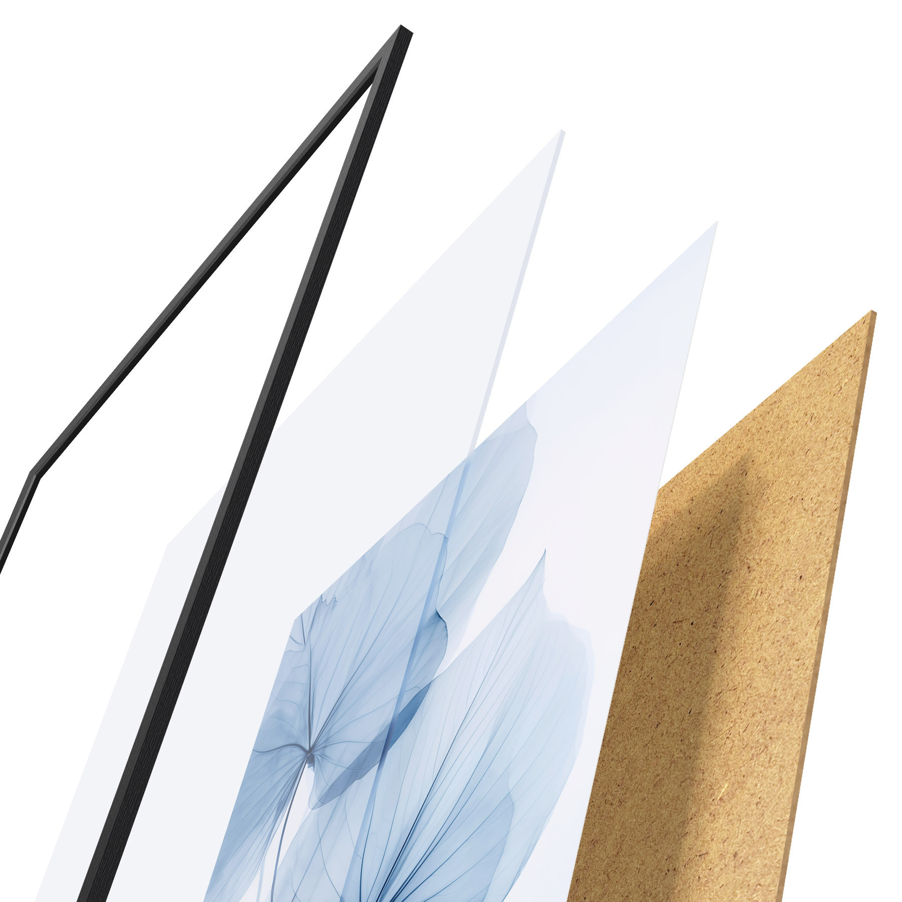 Plakat składa się z ramy, pleksi, wydrukowanego obrazu i podkładu z płyty wiórowej. Plakat można natychmiast zawiesić na ścianie dzięki uchwytom z tyłu.
