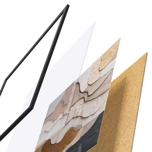 Plakat składa się z ramy, pleksi, wydrukowanego obrazu i podkładu z płyty wiórowej. Plakat można natychmiast zawiesić na ścianie dzięki uchwytom z tyłu.