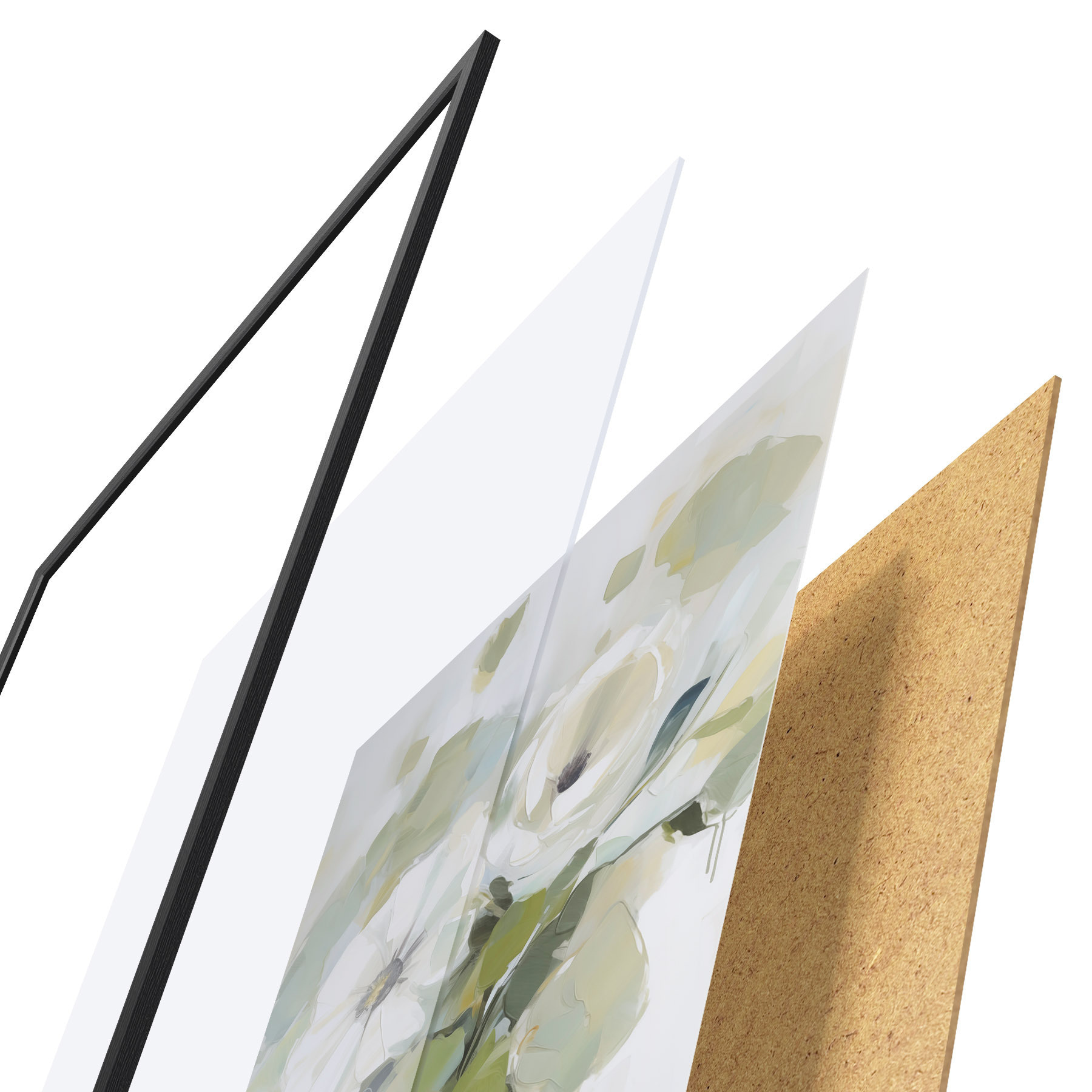 Plakat składa się z ramy, pleksi, wydrukowanego obrazu i podkładu z płyty wiórowej. Plakat można natychmiast zawiesić na ścianie dzięki uchwytom z tyłu.
