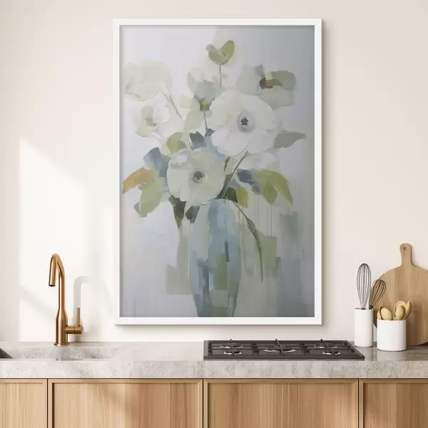 Plakat Kwiaty z liśćmi w wazonie, imitacja obrazu f48168