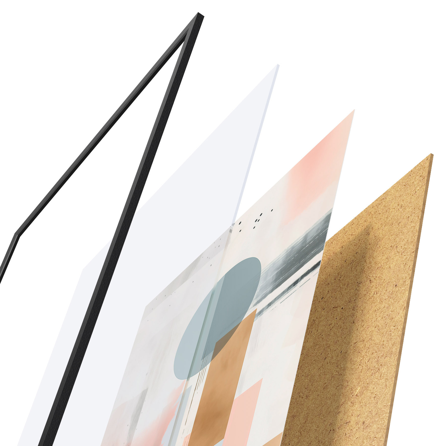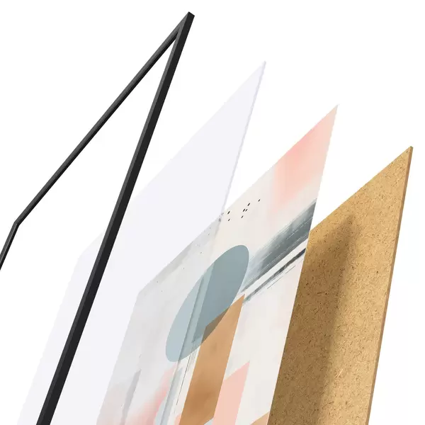 Plakat składa się z ramy, pleksi, wydrukowanego obrazu i podkładu z płyty wiórowej. Plakat można natychmiast zawiesić na ścianie dzięki uchwytom z tyłu.