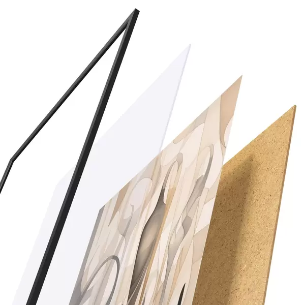 Plakat składa się z ramy, pleksi, wydrukowanego obrazu i podkładu z płyty wiórowej. Plakat można natychmiast zawiesić na ścianie dzięki uchwytom z tyłu.