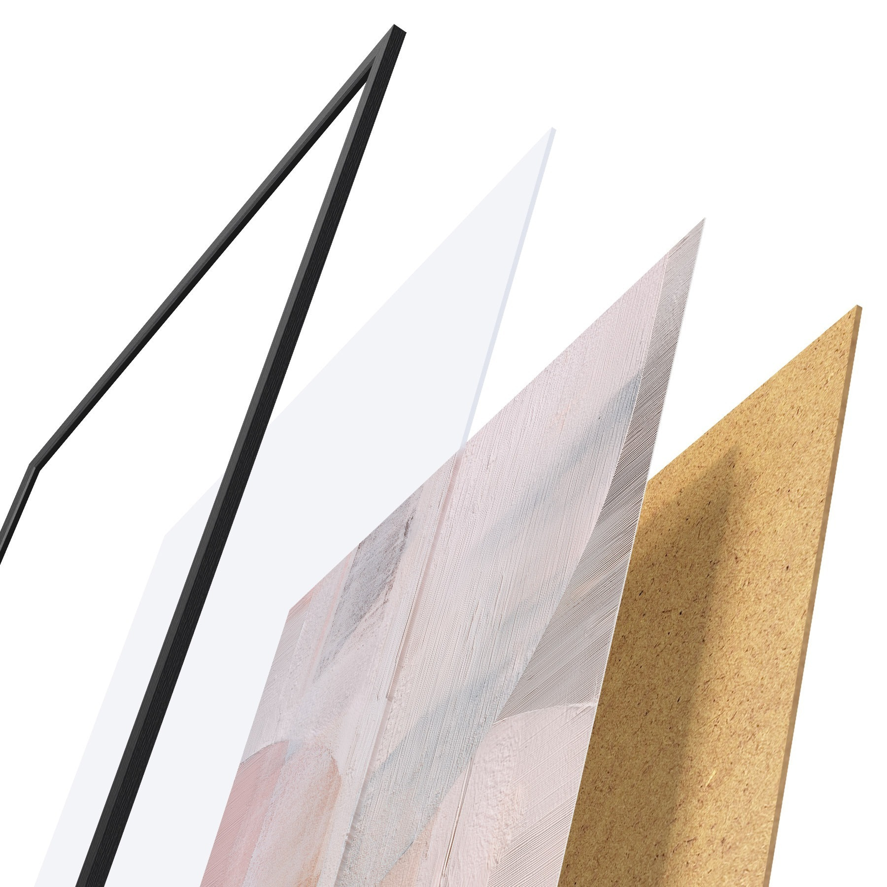 Plakat składa się z ramy, pleksi, wydrukowanego obrazu i podkładu z płyty wiórowej. Plakat można natychmiast zawiesić na ścianie dzięki uchwytom z tyłu.