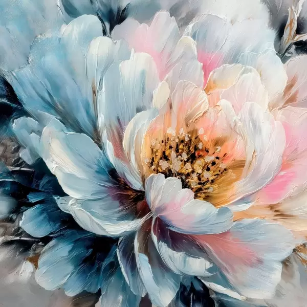 Poster Duża piwonia namalowana wyrazistymi, fakturalnymi pociągnięciami pędzla w stylu współczesnym Nr f48197