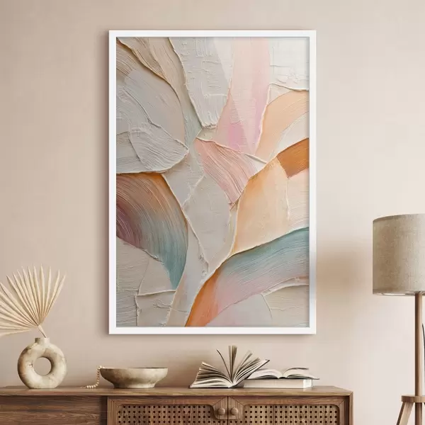 Plakat Abstrakcyjne tło z dynamicznymi pociągnięciami pędzla w odcieniach brzoskwini i błękitu f48202