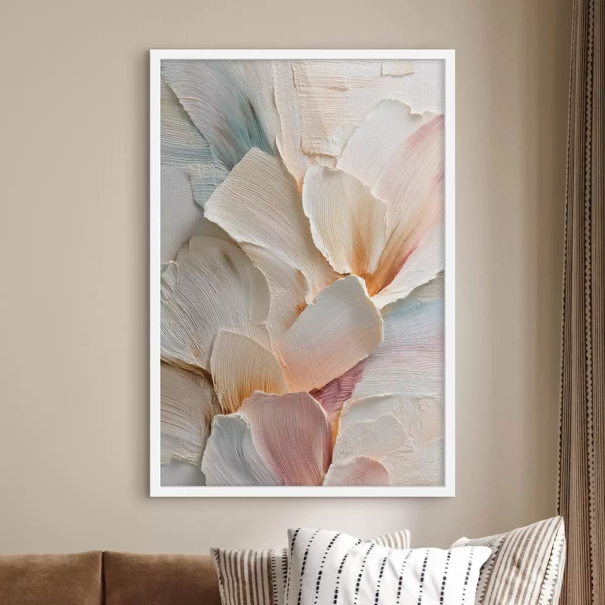 Plakat Abstrakcyjna kompozycja kwiatowa w jasnych odcieniach, utrzymana w stylu malarstwa olejnego f48204