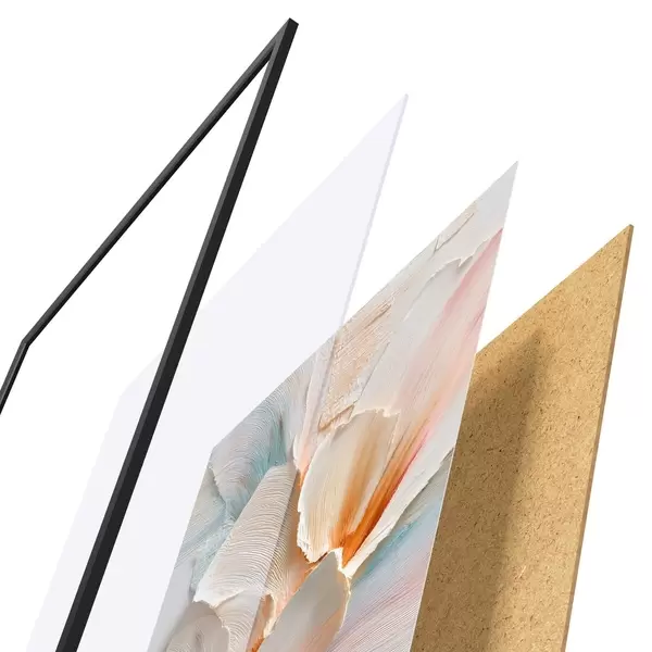 Plakat składa się z ramy, pleksi, wydrukowanego obrazu i podkładu z płyty wiórowej. Plakat można natychmiast zawiesić na ścianie dzięki uchwytom z tyłu.