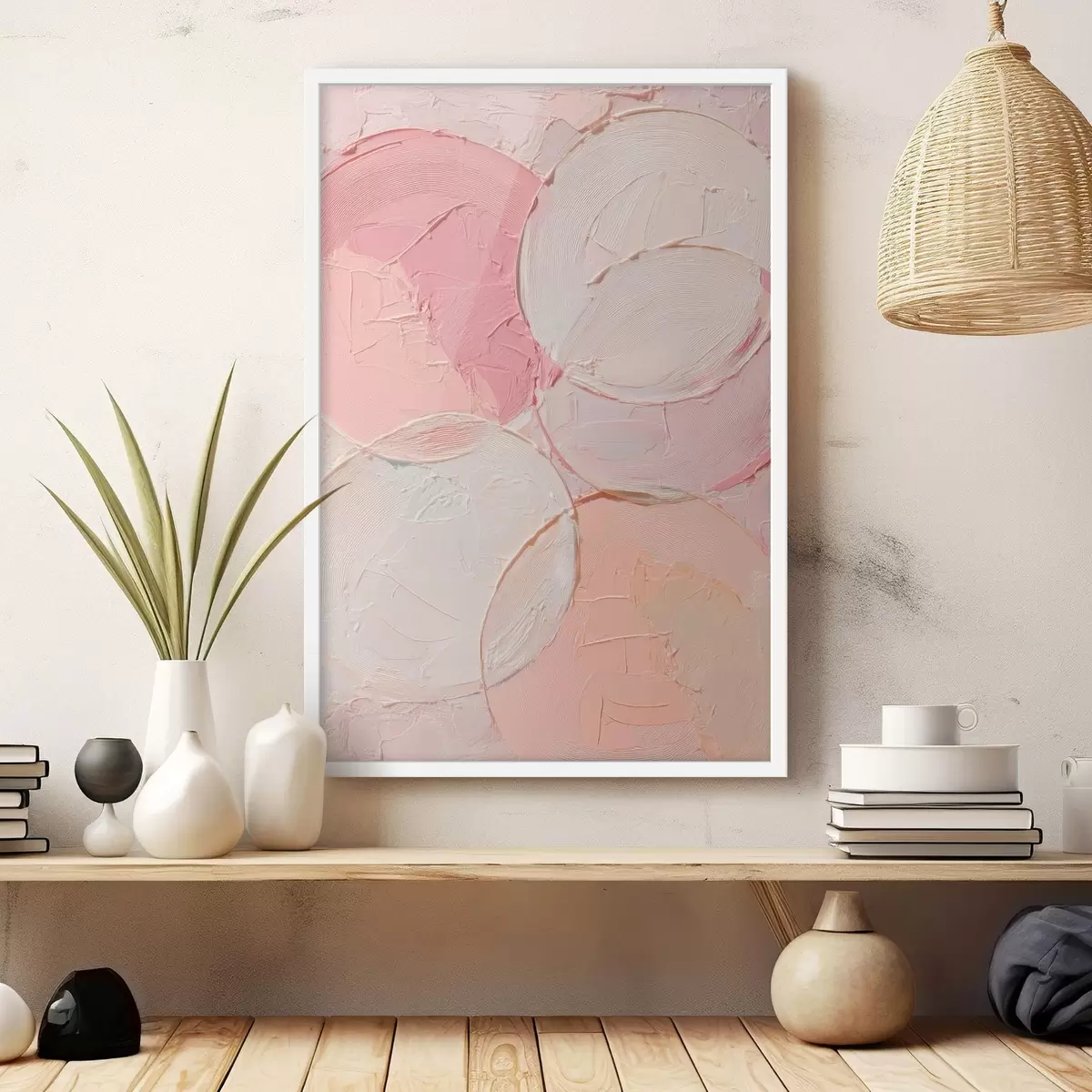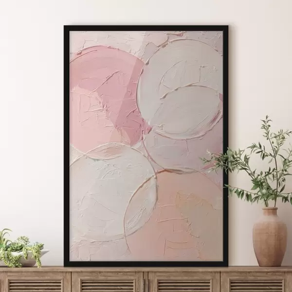 Poster Kompozycja abstrakcyjna z okręgami w delikatnych odcieniach różu, utrzymana w stylu malarstwa olejnego Nr f48207