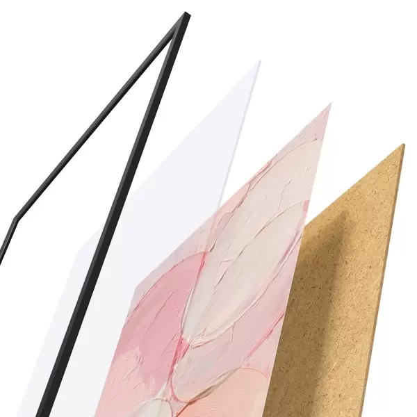 Plakat składa się z ramy, pleksi, wydrukowanego obrazu i podkładu z płyty wiórowej. Plakat można natychmiast zawiesić na ścianie dzięki uchwytom z tyłu.