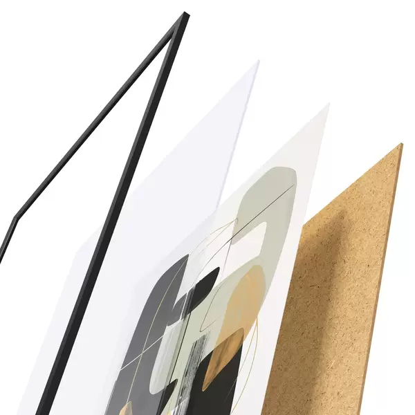 Plakat składa się z ramy, pleksi, wydrukowanego obrazu i podkładu z płyty wiórowej. Plakat można natychmiast zawiesić na ścianie dzięki uchwytom z tyłu.